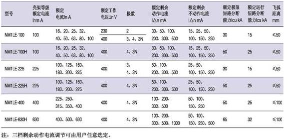 NM1LE系列漏电断路器(以下简称漏电断路器)是本公司综合采用国际先进技术设计、开发的新型漏电断路器之一。适用于交流50/60Hz,额定工作电压至400V,额定工作电流16A至630A的配电网络电路中作为漏电保护之用,也可用来防止因设备绝缘损坏,产生接地故障电流而引起的火灾危险。并可用来分配电能和保护线路及电源设备免受过载、短路等故障的损坏,亦可作为电动机的不频繁起动及过载、短路保护。 该漏电断路器具有体积小(和相对应的塑壳断路器体积相等)、分断高、飞弧短及剩余动作电流可调节等特点,同时可带报警触头、分励脱扣器、辅助触头等附件,是用户使用的理想产品。 漏电断路器垂直安装(即竖装),亦可水平安装 (即横装)。 本产品符合GB6829 idt IEC60755,GB14048.2 idt IEC60947-2标准。