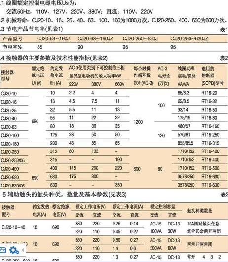 CJ20系列交流接触器(以下简称接触器),主要用于交流50Hz (或60Hz),额定工作电压至660V,额定工作电流至630A的电路中,供远距离接通和分断电路之用,并可与适当的热过载继电器组合,以保护可能发生操作过负荷的电路。 接触器符合IEC60947-4-1、GB14048.4标准。 二,型号及意义